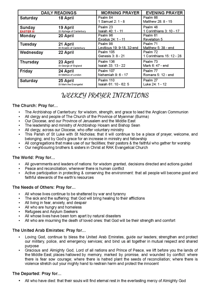 daily readings & prayers Click on the image to download the St Luke Prayer Book. The Scripture readings & prayer intentions below, are used in conjunction with Morning & Evening Prayer.